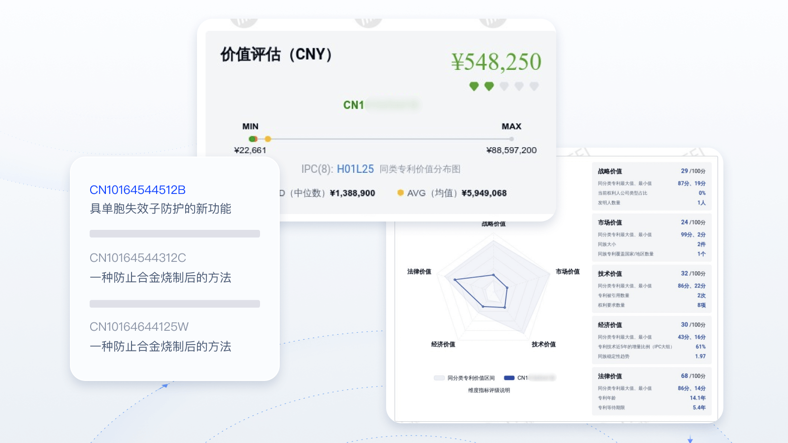 实时评估技术创新性和可专利性,有效把控申请专利质量。